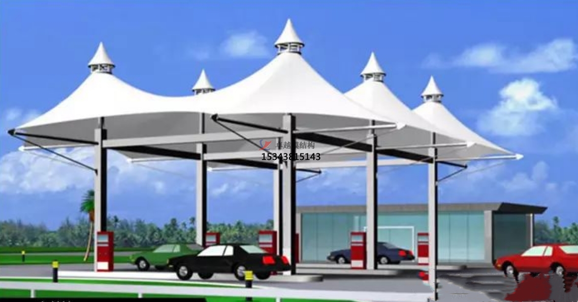 加油站主要是為機(jī)動(dòng)車提供燃油的場(chǎng)所,外觀醒目、具有良好親和力的加油站能吸引更多客源、為自己的生意紅火平添一份動(dòng)力。加油站膜結(jié)構(gòu)憑借其顯著區(qū)別與其他結(jié)構(gòu)的獨(dú)特外形,能迅速的抓住顧客的眼球,瞬時(shí)拉近與顧客的距離。
