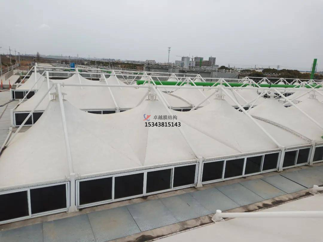 在運輸污水池膜材時,盡量將蓋板分成小塊搬運。這樣不僅時利于拆卸及人工的搬運.同時也省去了調(diào)用大型設備的成本。在各個膜材板運輸?shù)轿缓?在進行拼接安裝時.各個小塊膜材之間、膜材和水池頂面之間需要密封連接,這樣可以有效防止臭氣泄漏。在我們拼接安裝完成之后,可以先用水或是空氣來代替臭氣進行調(diào)試.檢測其安裝結(jié)果是否達到了密封性效果,檢查蓋板有無滴、漏、冒等現(xiàn)象。在進行著一系列檢驗工作完成之后.才能正常使用。