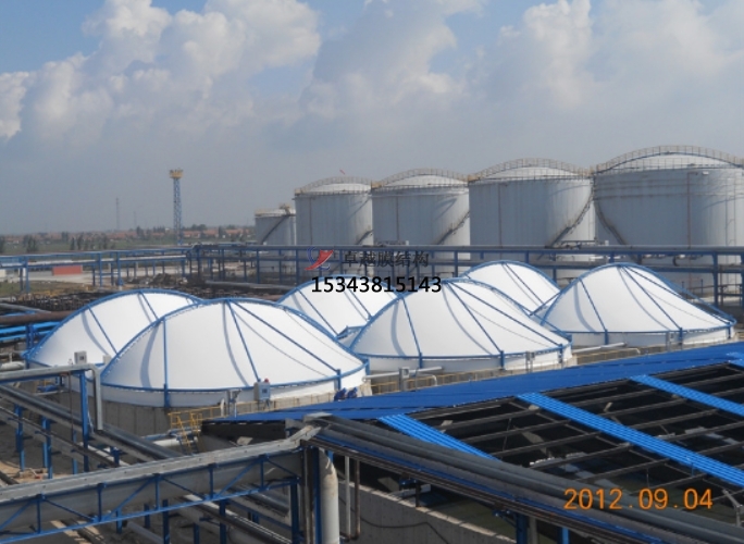 由于膜材自重輕,而抗拉強度很大膜結構可以從根本上克服傳統(tǒng)結構在大跨度(中間無支撐)建筑上實現(xiàn)所遇到的困難,適于大跨度的池體。