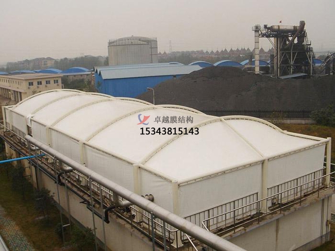 膜加蓋的廢氣搜集方法,不只能從根本大將廢氣合格排放,并且通過膜材的運用,不只能夠延長鋼構(gòu)的運用壽命,并且造型美觀,結(jié)構(gòu)新穎,除臭率高,是一切傳統(tǒng)污水池加蓋不能比的。