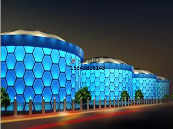 北京奧運會場館“鳥巢”和“水立方”膜結構采用ETFE膜材,是目前國內更大的ETFE膜材結構建筑,膜材采用進口產品。“鳥巢”采用雙層膜結構,外層用ETFE防雨雪防紫外線,內層用PTFE達到保溫、防結露、隔音和光效的目的。“水立方”采用雙層ETFE充氣膜結構,共1437塊氣枕,每一塊都好像一個“水泡泡”,氣枕可以通過控制充氣量的多少,對遮光度和透光性進行調節(jié),有效地利用自然光,節(jié)省能源,并且具有良好的保溫隔熱、消除回聲,為運動員和觀眾提供溫馨,安逸的環(huán)境。