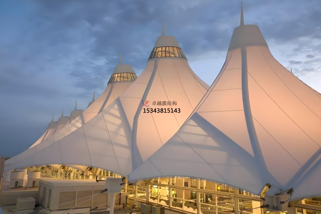從功用角度來看,膜結(jié)構(gòu)的許多特性使其非常合適機(jī)場(chǎng)環(huán)境。杰出的透光性是膜結(jié)構(gòu)的一大亮點(diǎn)。例如,一些膜資料對(duì)天然光的透射率可達(dá) 25%,透射光在修建內(nèi)部發(fā)生均勻的漫射光,無陰影、無眩光,具有杰出的顯色性。這意味著在白天,機(jī)場(chǎng)內(nèi)部可以充分利用天然采光,削減人工照明的運(yùn)用,然后降低能耗,完成節(jié)能環(huán)保。一起,均勻柔軟的光線也為旅客提供了愈加舒適的視覺環(huán)境,有利于提高旅客的候機(jī)體會(huì)。膜結(jié)構(gòu)的自潔性能也非常超卓。像 PTFE 膜材和通過特殊外表處理的 PVC 膜材,雨水會(huì)在其外表聚成水珠流下,使膜材外表得到天然清洗,無需大量人工維護(hù),就能始終保持整齊漂亮,大大降低了后期維護(hù)本錢。