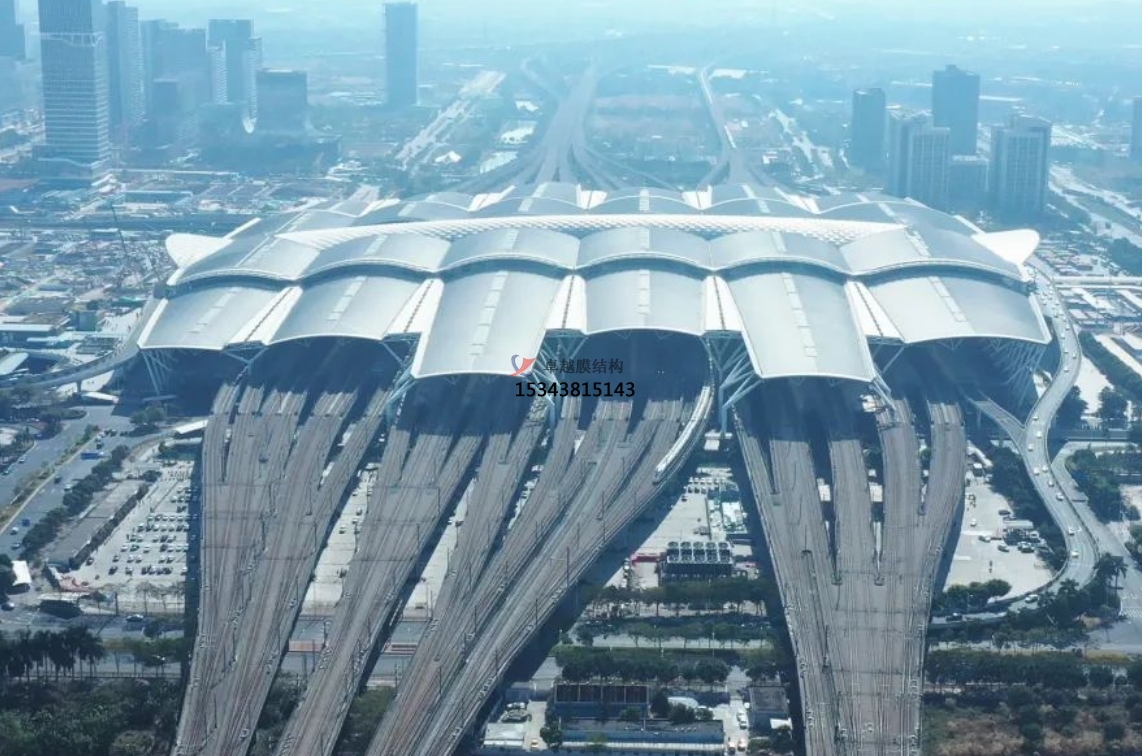 高鐵站膜結(jié)構(gòu)是一種采用‌高強(qiáng)度高耐久性的膜材料作為覆蓋層,并通過(guò)鋼索、鋼架等支撐體系構(gòu)成的空間結(jié)構(gòu)‌。這種結(jié)構(gòu)在高鐵站建設(shè)中具有顯著的優(yōu)勢(shì)和應(yīng)用價(jià)值。