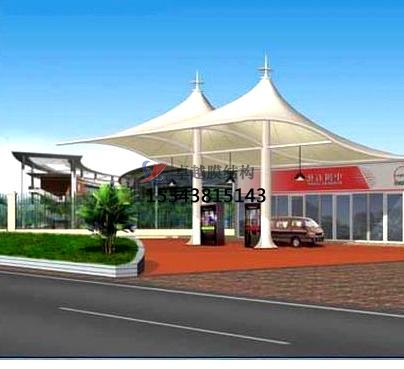 目前許多加油站和收費站的頂棚都是選擇膜結(jié)構(gòu)來建造的,因其擁有工期短,壽命長,造型美觀,自潔性強(qiáng),防火等優(yōu)點。
