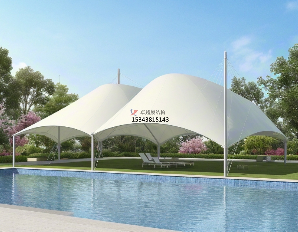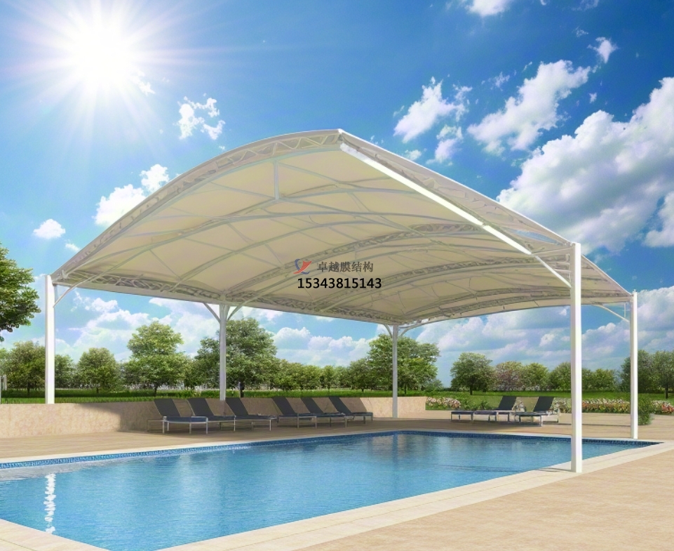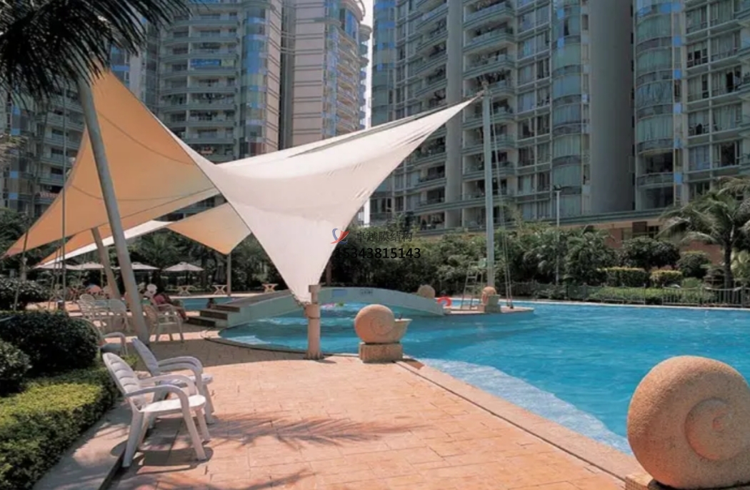 膜結(jié)構(gòu)遮陽(yáng)棚的設(shè)計(jì)靈活多變,可以根據(jù)不同的場(chǎng)地和需求進(jìn)行定制。其獨(dú)特的造型和線條流暢的外觀,能夠與現(xiàn)代建筑風(fēng)格完美融合,提升整體建筑的美觀度和檔次。同時(shí),膜結(jié)構(gòu)遮陽(yáng)棚還賦予了設(shè)計(jì)師更大的發(fā)揮空間,可以賦予遮陽(yáng)棚更多曲面、線條,使得整個(gè)遮陽(yáng)棚看起來非常具有張力及雕塑感,成為游泳池邊上一道獨(dú)特的風(fēng)景線。
