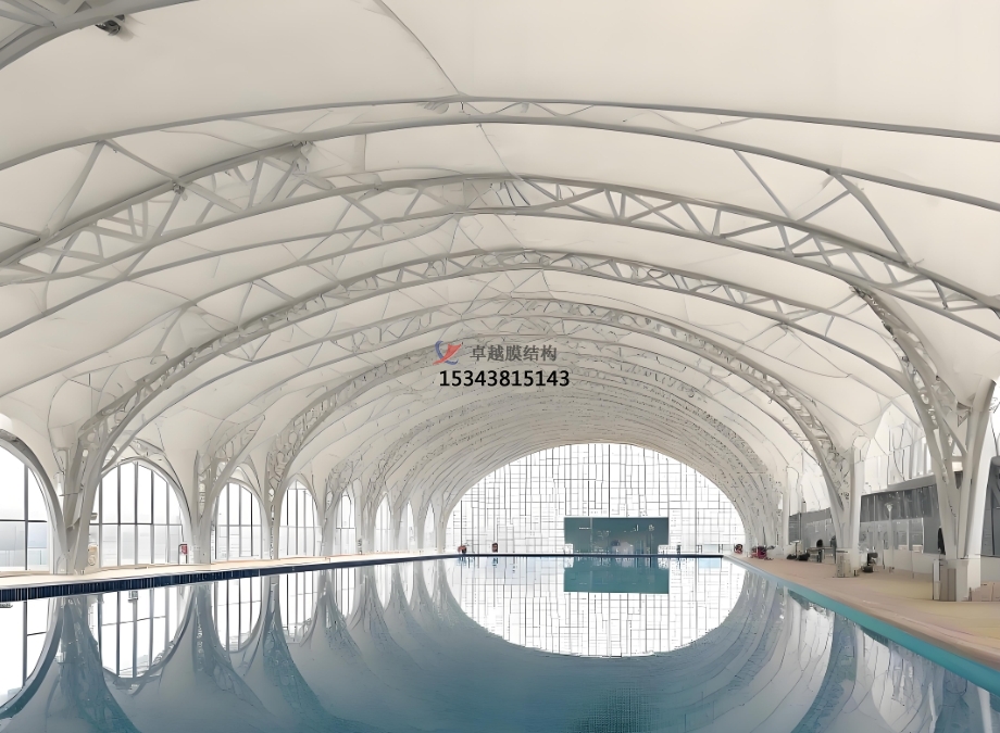 膜結(jié)構(gòu)遮陽(yáng)棚所采用的膜材料,具有自重輕、透光性好、隔熱性能強(qiáng)、耐腐蝕、防水、耐菌、耐高溫、抗紫外線、老化慢等優(yōu)點(diǎn)。這種材料不僅能夠提供有效的遮陽(yáng)效果,還能有效隔絕紫外線,保護(hù)游泳者的皮膚。同時(shí),膜材料具有良好的自潔能力,不易沾染灰塵,依靠雨水沖洗就能保持潔凈,大大降低了后期維護(hù)成本。