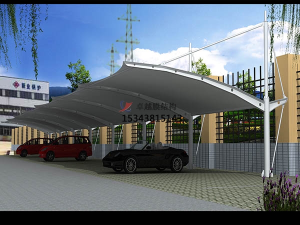 2、較為簡(jiǎn)單的方法是將許多膜結(jié)構(gòu)車棚膜片排成一排并加以固定,不過不能夠防水;