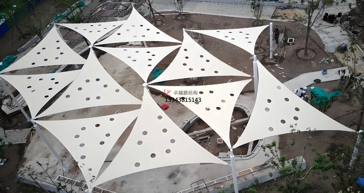 景觀是建筑群整體和諧美觀不可缺少的一部分,是渲染空間氛圍的重要元素。合適的景觀不僅能夠讓建筑整體更完整,還能增添藝術(shù)感與創(chuàng)意性。膜結(jié)構(gòu)在現(xiàn)代景觀建筑領(lǐng)域中的應(yīng)用獨(dú)樹一幟,各類創(chuàng)意設(shè)計(jì)不斷刷新景觀的造型上限,重塑空間的美學(xué)與功能體驗(yàn)。