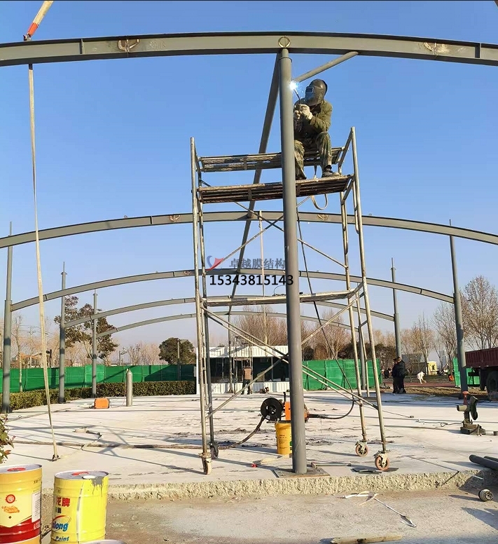3?、經(jīng)濟性和施工效率?:膜結(jié)構(gòu)車棚的建造費用較低,施工周期短。由于其材料輕盈,不需要大量的鋼架支撐,建造成本僅為傳統(tǒng)鋼結(jié)構(gòu)的1/3,極大地節(jié)省了施工時間和成本?。