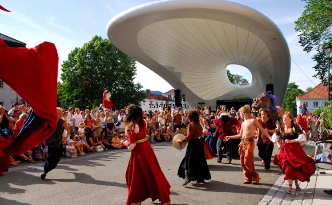 膜結(jié)構(gòu)舞臺在景觀設計中同樣大放異彩。索拉膜形式的應用,配合奇幻的燈光設計,為廣場、公園、景區(qū)等場所增添了一道道亮麗的風景線。這些膜結(jié)構(gòu)不僅是遮陽擋雨的功能性設施,更是藝術(shù)與自然的完美融合。