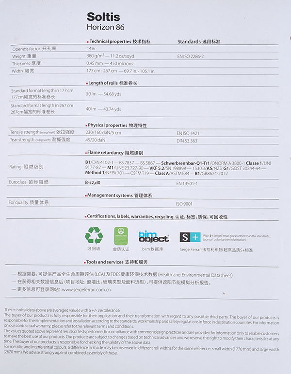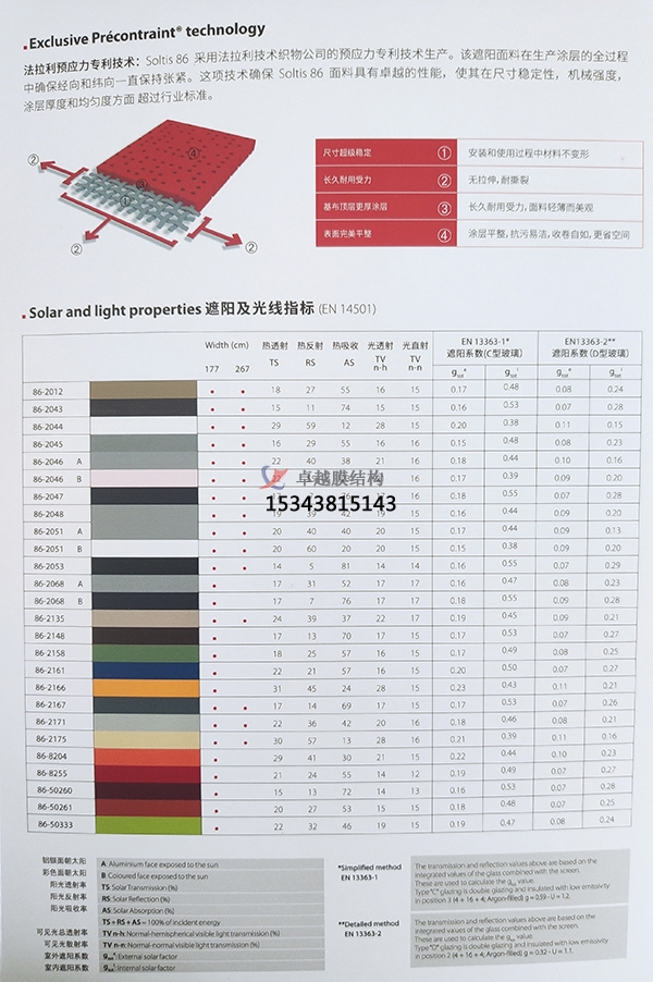 法拉利膜材十多年來,法拉利(PVDF)表面處理的復合膜材被應用在全世界重要的織物建筑工程中?,F(xiàn)在,第代膜材再次確認了這一出眾材料性能的更新發(fā)展。法拉利研發(fā)了第代材料正是為了滿足建筑師和業(yè)主在新世紀之初對于織物建筑提出的要求。這一 全新的膜材得益于更新的科研技術(shù),即將PVDF和硬化介體完美地結(jié)合。這種特殊的結(jié)合明顯地提高了材料的機械強度、使用壽命,并能長期保持織物建筑的原始 美觀。第代膜材在積累了10多年的經(jīng)驗的基礎(chǔ)上,可以提供專業(yè)保證。法拉利現(xiàn)在能夠根據(jù)要求和每個項目的具體情況,提供12年質(zhì)量保證 (PRECONTRAINT702除外)。