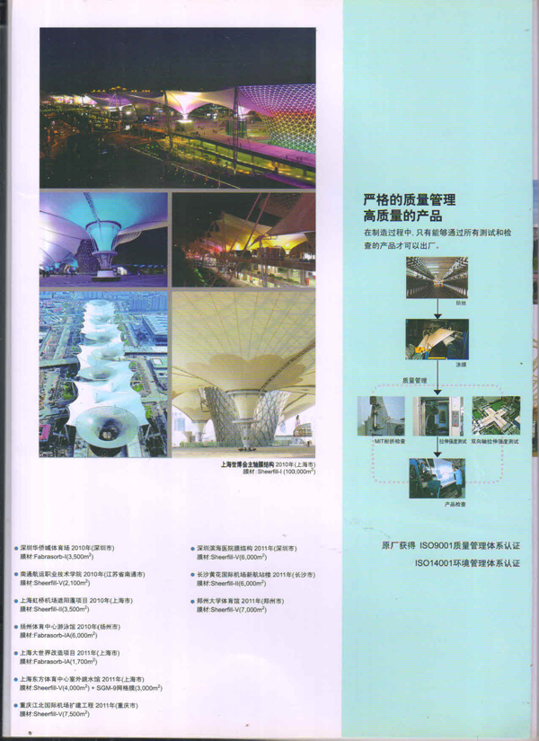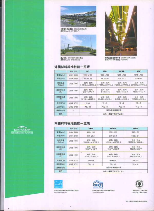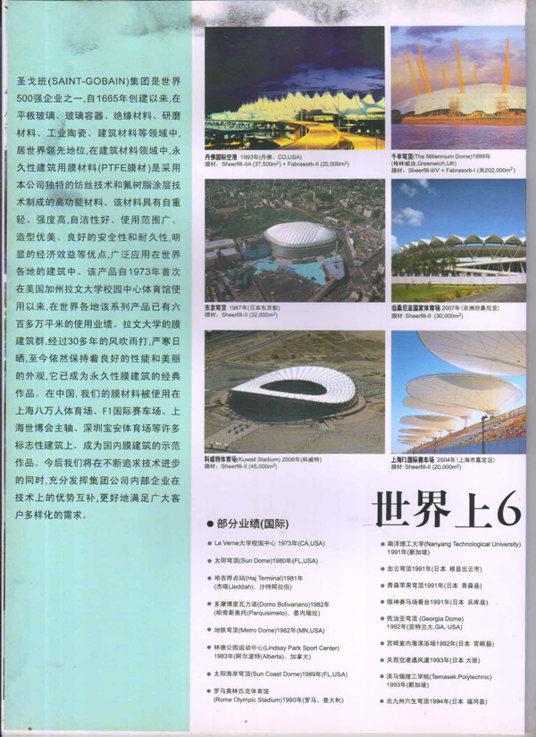 圣戈班工業(yè)薄膜為市場提供高性能聚合物薄膜、微孔過濾膜、薄膜圖層、復(fù)合薄膜和壓敏膠帶等多種產(chǎn)品近40多年,在相關(guān)行業(yè)中具有領(lǐng)先的地位。在諸多建筑中,我們都能看到圣戈班的影子,其中就有被很好的建筑師青睞的PTFE的建筑膜,實(shí)際上它就是圣戈班SHEERFILL®建筑網(wǎng)格布。